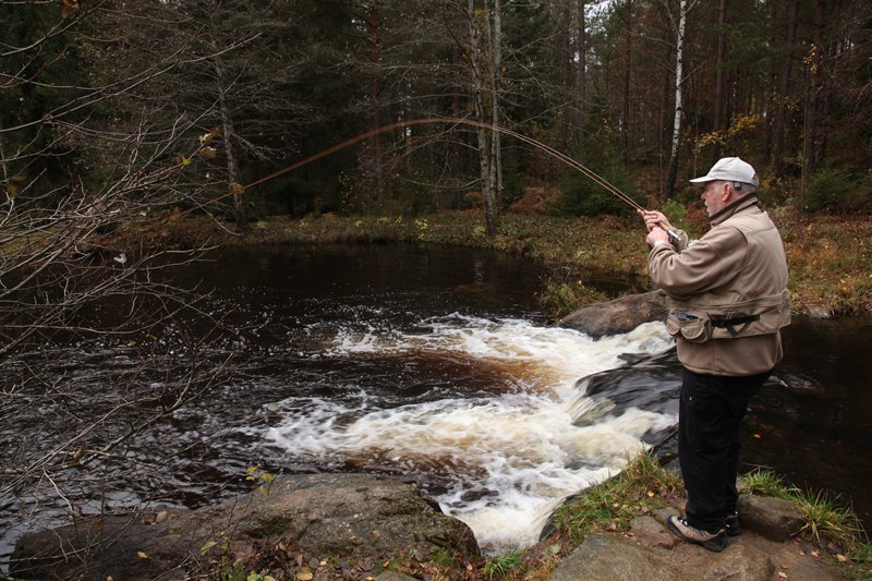 Unterhalb dieses Sees fließt über eine Strecke von ca. 400 Meter der Klavreström durch ein offenes Waldstück. Die Forellen die hier ausgesetzt werden, haben sich erst an das natürliche Futter gewöhnen können: Insekten und Kleinfische. Deshalb sind die Fische eben nicht immer leicht an den Haken zu kriegen.