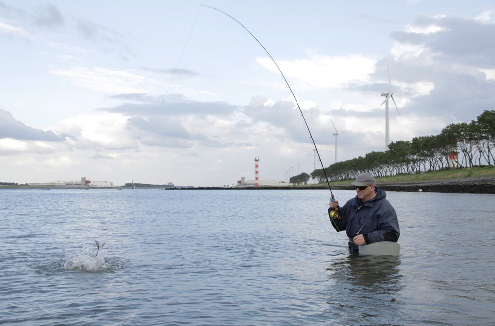 Wenn man aus Nordrhein-Westfalen kommt und in Salzwasser oder Brackwasser mit der Fliege fischen möchte (z.B. auch auf Wolfsbarsch aber dazu ein anderes Mal), liegt es auf der Hand, in die Niederlande zu fahren. Die Finte werden hier vor allem in der Nähe der Maasvlakte gefangen. Es gibt zum Beispiel eine Stelle unweit von Rozenburg, an der viele Leute mit der Fliegenrute auf Finte fischen. Man kann hier bei Niedrigwasser watend fischen, sollte aber rechtzeitig wieder am Ufer sein, wenn mal wieder ein Schiff vom Meer stromauf oder eben stromab fährt. Und das ist nicht ungefährlich! Es kann etwa eine Stunde vor Niedrigwasser und bis zu zwei Stunden nach Niedrigwasser gefischt werden, der Wasserstand bei Ebbe wechselt von Tag zu Tag.