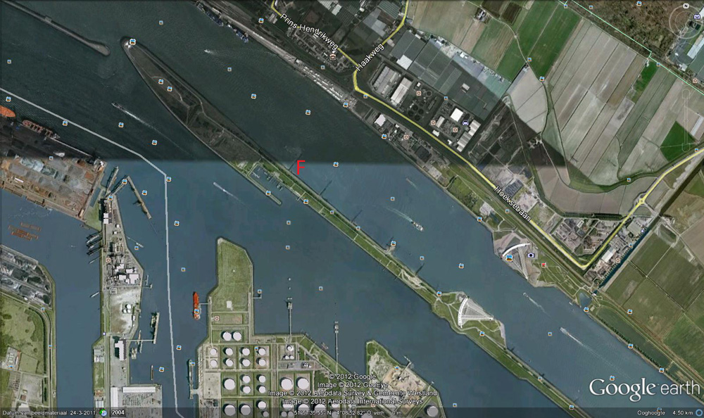 NACHTRAG 02.08.2012: Auf Wunsch hier unten ein Bild aus Google Maps von der beschriebenen Stelle. Bei „F“ muss man ins Wasser rein…