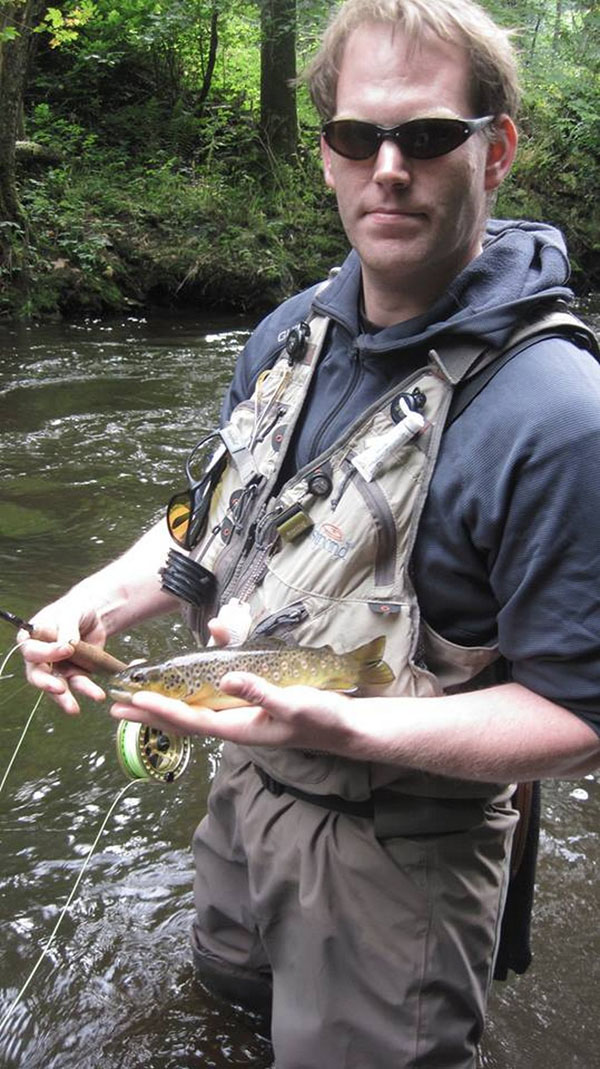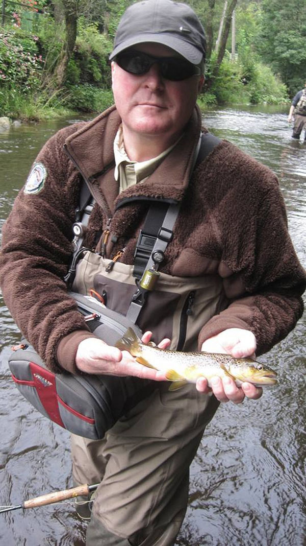 So fischten wir, geführt von Alex, die Rur systematisch ab. Erstaunlich für uns war, mit welcher Sicherheit Alex sich im Wasser bewegte. Es schien als ob er jeden Stein persönlich kannte. Ebenso sicher waren seine Ansagen bezüglich dort stehenden Forellen oder Äschen – Anbiss auf Ansage. Das Wetter spielte mit, der Wasserstand war optimal und Fische waren reichlich vorhanden. Somit fischten wir bis uns das verschwindende Tageslicht daran hinderte. Am Ende des Tages hatten wir Bachforellen und Äschen von 30 – 45 cm am Haken. Bedingt durch die etwas andere Fischerei schmerzte uns anschließend ein wenig die Schulter. Dies tat dem gelungenen Tag jedoch keinen Abbruch.