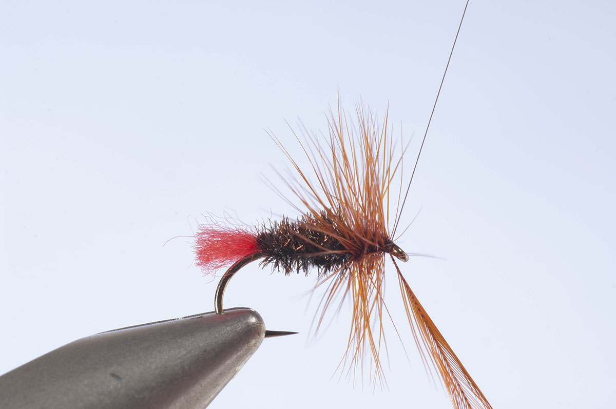 Vielleicht verdankt die Red Tag ihren Erfolg auch der Tatsache, dass Tag und Körper während des Drifts in oder sogar unter die Wasseroberfläche sinken. Die Fliege fischt sich somit eher als Aufsteiger und weniger als echte Trockenfliege. Ich fette deshalb auch nie Tag und Körper ein, nur die Hechel.