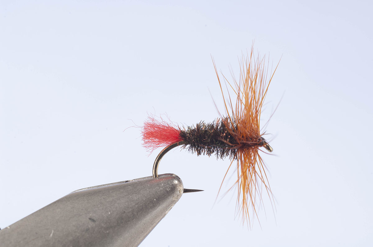 Einer meiner Angelfreunde ist ein fanatischer Liebhaber der Red Tag. Er benutzt sie eigentlich immer. Sogar seine Naßfliegen, Nymphen und Streamer bindet er im Stile der Red Tag. Seiner Meinung nach fangen sie alle “super”. Ich persönlich fische auch sehr gerne mit einer Red Tag, meist in etwas kleineren Größen. Eine Red Tag mit schwarzer Kopfhechel ist meine Lieblingsfliege für Rotfeder.