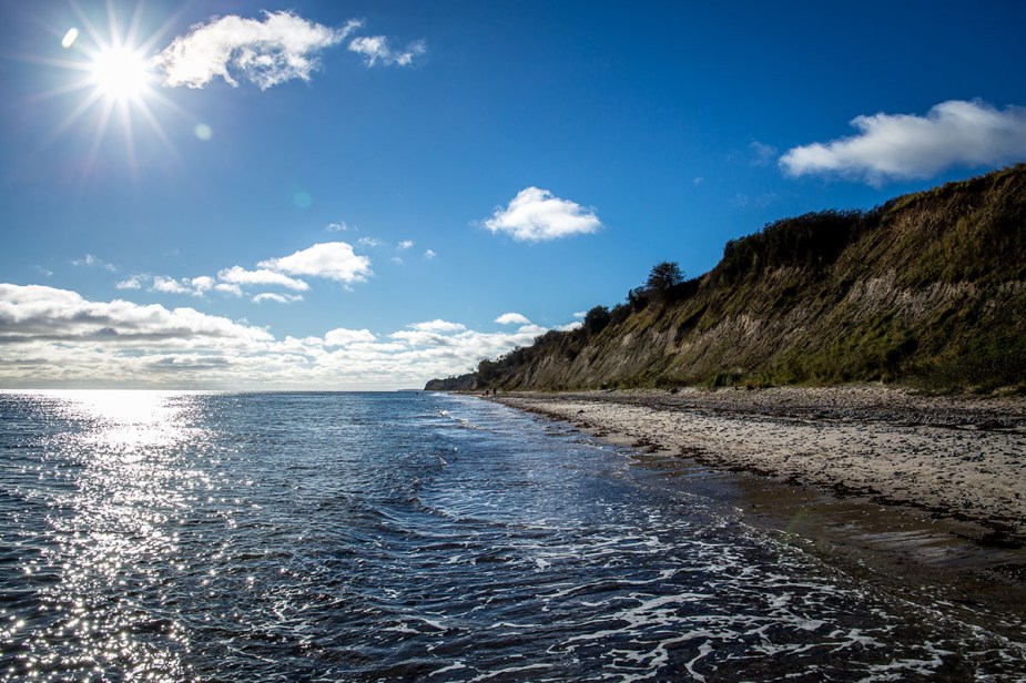 Theo und Rudy haben schon ihre Erfahrungen auf Møn, eine Insel, gelegen zwischen der Südspitze Seelands und der Ostspitze Falsters. Für mich ist es Neuland. Natürlich hatte ich auf Bildern schon gesehen, dass es landschaftlich an einigen Stellen sehr reizvoll ist (gerade vor Møns Klint, ein bis 128 Meter hoher Kreidefelsen auf der Ostseite der Insel).